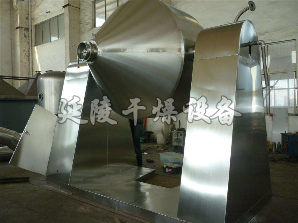 在密闭的夹层中通入热源,热量经内壳传给被干燥物料;在动力驱动下,罐体作缓慢旋转,罐内物料不断地混合,从而达到强化的目的;物料处于真空状态,气压下降使物料表面的溶剂达到饱和状态而蒸发了,并由真空泵及时排出,物料内部的溶剂不断地向表面渗透、蒸发、排出,三个过程不断进行,物料在很短时间内达到干燥目的。